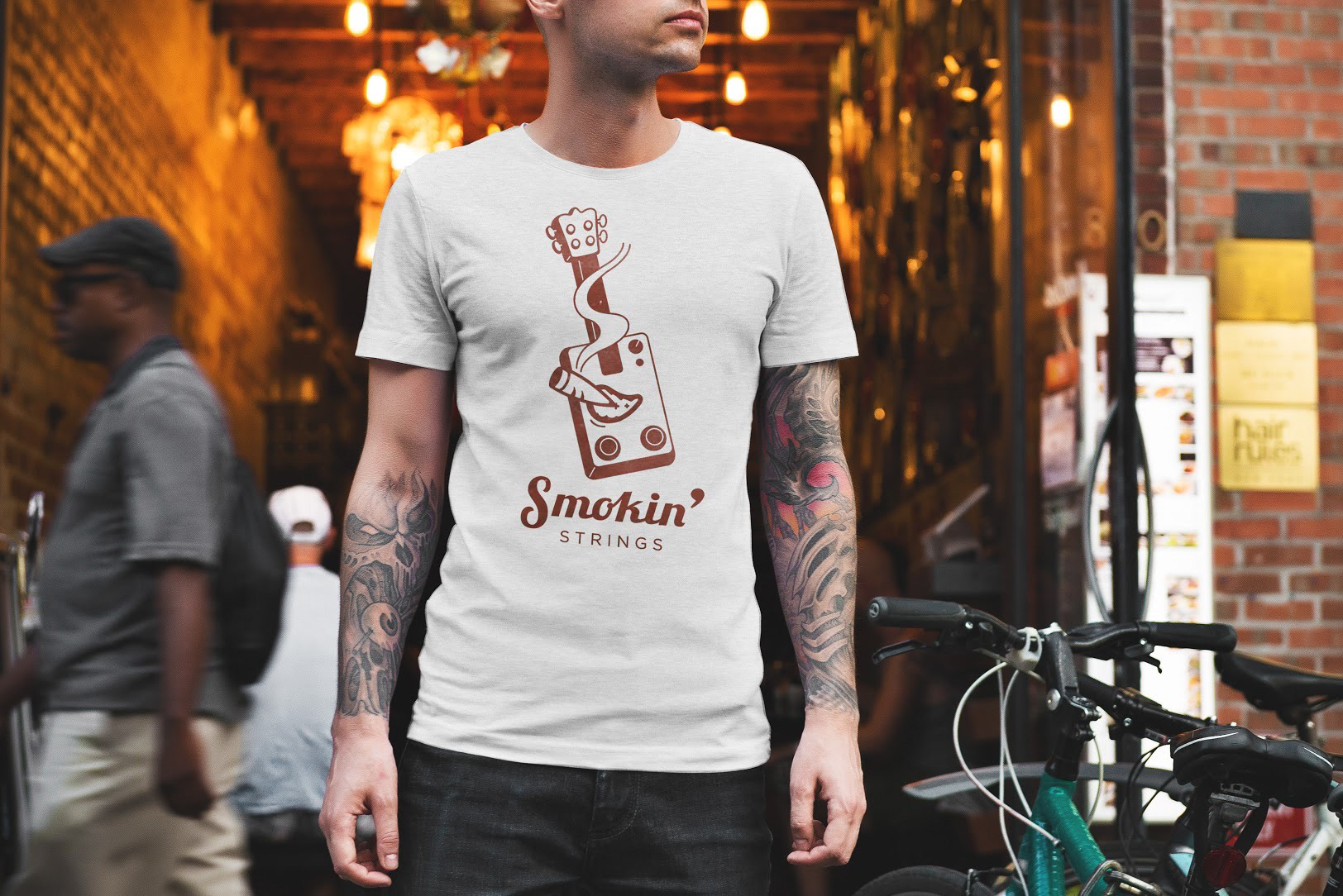 I wanted to express the idea of playfulness and creativity as this market would be targeted to those that would be drawn to those features. I chose to place a cartoon mouth with a smoking cigar in place of where a traditional guitar mouth would be.